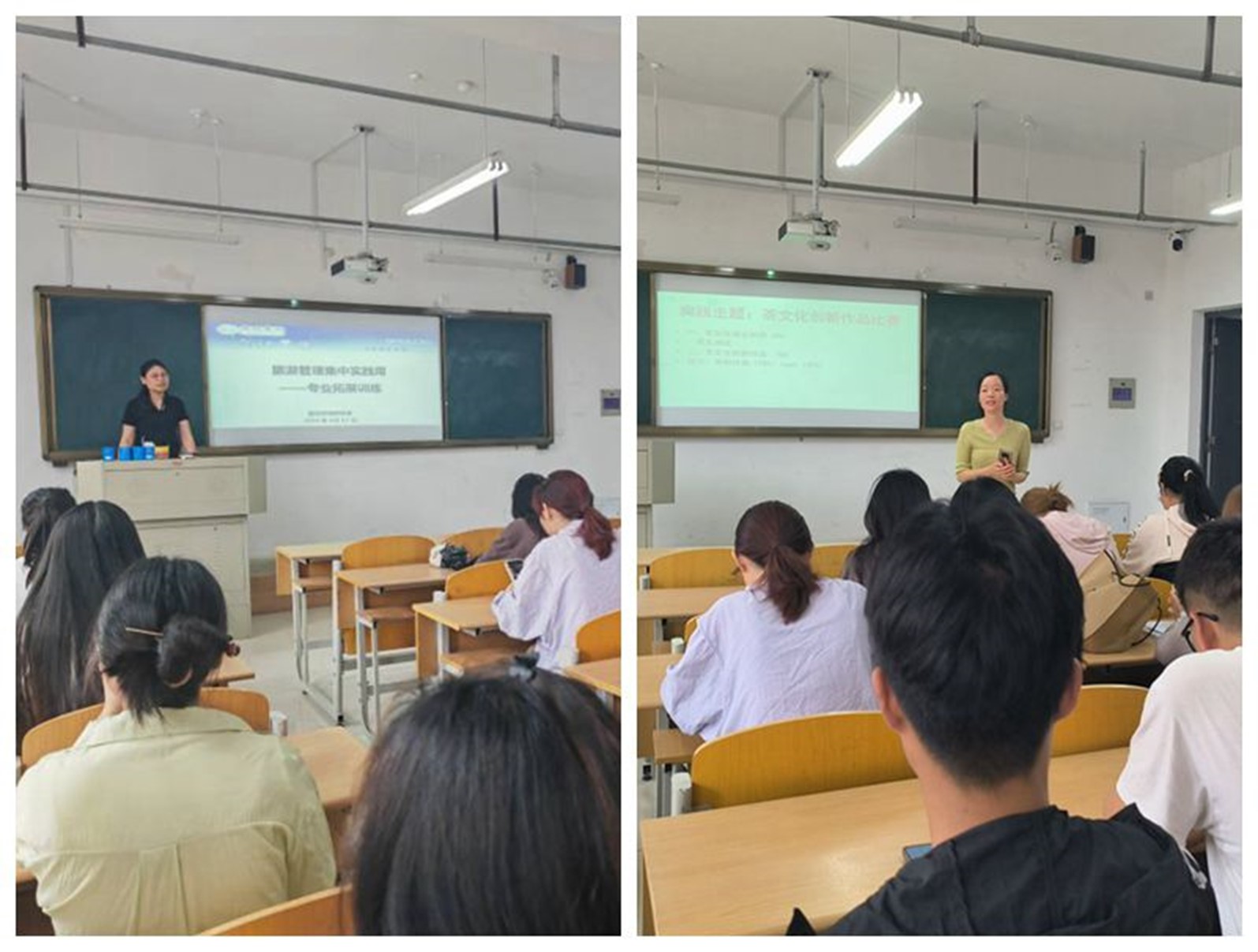 赛程组织,融合双创提升。6月21日借助超星学习通平台进行了茶文化知识竞赛。6月26日在C105开展了茶文化创新作品比赛,各组进行ppt汇报及现场答辩。汇报过程中,同学们准备充分,并对评委老师提出的问题进行回答。最后评委老师对各组作品进行了点评。指导老师要求根据评委意见进行修改完善。