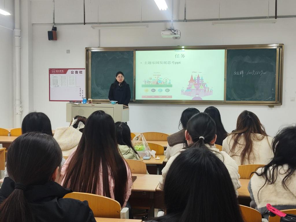 返回学校后,在指导老师的引导下,同学们认真查阅主题公园的相关知识,并对主题公园的发展进行思考,制作ppt。12月6日、12月7日,23旅游管理和22旅游管理分别组织开展了专业见习汇报总结。同学们踊跃发言,围绕实践认知、亲身体验、内心感受、个人收获以及专业认同、主题公园发展、职业发展等多方面畅谈想法。老师也进行了点评并对同学们在专业见习活动中的表现进行了充分的肯定。
