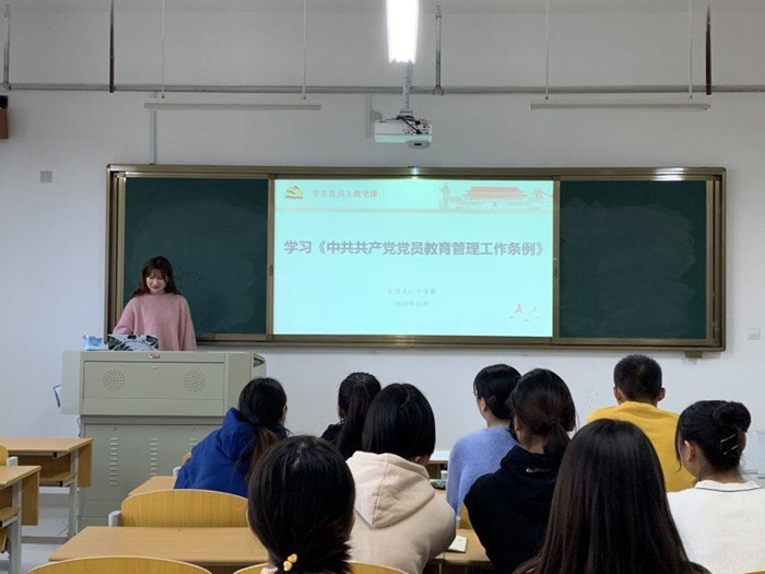 为创新党员教育形式,增强党员教育实效。4月21日下午,学院旅游管理学生党支部在实训楼C104开展学习《中国共产党党员教育管理工作条例》(以下简称《条例》)微党课活动。旅游管理学生党支部党员黄萍萍主讲,支部全体党员参加。