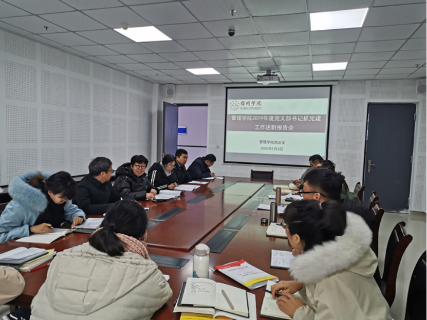 会议严格按照《中共宿州学院委员会关于做好2019年度基层党组织书记抓党建述职评议考核工作实施方案》文件要求,5名党支部书记联系工作实际依次以深入学习贯彻习近平新时代中国特色社会主义思想、党的十九大和十九届四中全会精神为主线,着重突出党组织书记本人抓党建工作的基本思路、基层党组织标准化建设、三会一课、党员活动的开展情况等方面,对2019年以来支部工作情况进行总结。在每位述职人员发言结束后,刘大为进行详细点评,指出存在问题、指明努力方向。随后,与会人员对各党支部书记全年抓基层党建工作情况进行了民主测评。最后,刘大为对各支部2019年度所开展的工作和取得的成果表示肯定,同时他强调到要持续推进基层党组织工作质量的提升,深化基层党组织标准化、规范化建设,全面提升党支部的组织力、战斗力和凝聚力。