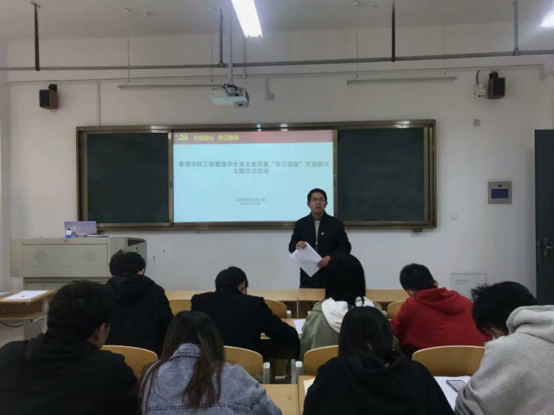 1月6日下午2:00,工程管理学生党支部在实训楼C107召开“学习强国”交流研讨主题党日活动。本次活动由工程管理学生党支部支部书记徐敬亮主持,支部全体在校学生党员参加。