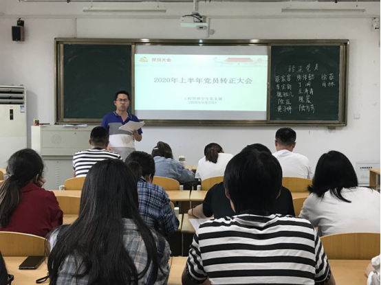 2020年9月23日15:00,工程管理学生党支部于实训楼C105召开2020年上半年党员转正大会。会议由工程管理学生党支部书记徐敬亮主持,党总支书记刘大为、部分教师及支部全体在校学生党员参加。