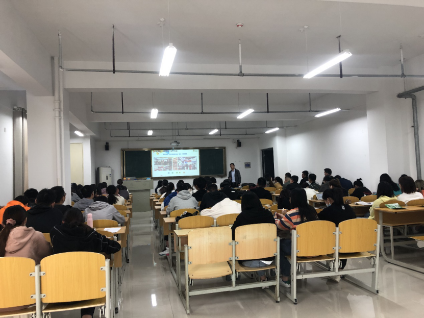 阜阳天邦食品有限公司负责人通过PPT讲解向同学大概展示了其公司当前发展现状及发展前景,表达了其公司对人力资源管理人才的需求及具体要求。