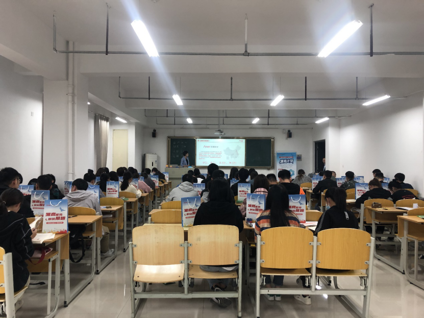 合肥链家经纪有限公司通过播放宣传视频、讲解PPT详细介绍了其公司的成长历程、岗位设置、福利待遇及面试流程。在宣讲过程中着重介绍了毕业生入职后的专业培训及晋升路径。并现场进行了我院毕业生求职电子简历及纸质简历的收取。