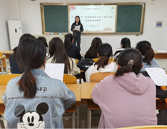 为了贯彻习近平召开“扎实推进长三角一体化发展”座谈会精神,加强学生党员思想素养。10月27日中午12:30,人力资源管理学生党支部于实训楼C111开展以习近平召开的“扎实推进长三角一体化发展”座谈会精神为主题的党课。会议由支部书记王思惠主持,支部全体成员参加。