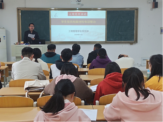 为进一步规范发展党员工作程序,严明发展党员工作纪律,学院工程管理学生党支部于11月2日中午12:30,在实训楼C105召开学院工程管理学生党支部学生党员档案材料专项整治主题党日活动。活动由支部书记徐敬亮主持,支部全体学生党员参加。