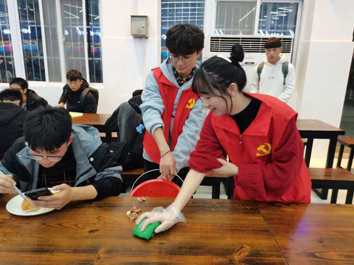 为切实加强对发展对象的培养教育工作、确保发展对象的质量,促进其德、智、体、美、劳全面发展,使之能够更好地树立模范带头作用。学院党总支于11月15日下午6点在我校三食堂开展2020年下半年发展对象社会实践活动——走进食堂志愿服务活动。