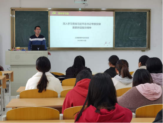 为进一步深入学习贯彻习近平总书记视察安徽重要讲话精神,加强党员发展对象理想信念和党性教育,10月26日中午12:30,学院工程管理学生党支部于实训楼C105召开习近平考察安徽重要讲话指示精神集中学习会。会议于由工程管理学生党支部书记徐敬亮主持,支部全体党员参加。