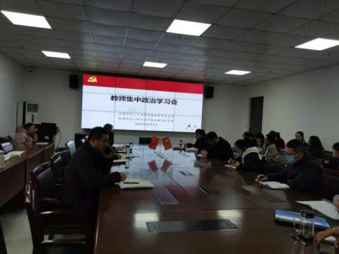 12月2日下午,管理学院召开教师集中政治学习会,人力与旅游酒店教师党支部和工程与房产物业教师党支部全体教师参会,会议由刘大为书记主持,教师支部书记王淑霞、王元宝领学。