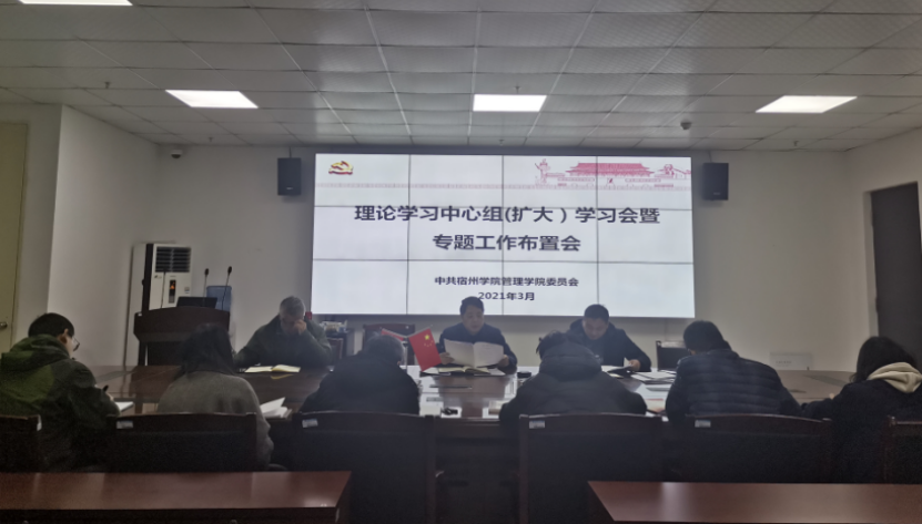 3月6日上午9:00,管理学院党委在实训楼C310召开理论学习中心组(扩大) 学习会暨专题工作布置会,党委书记刘大为主持,理论学习中心组成员、科级干部和党支部书记参会。