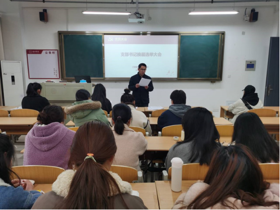 会议伊始,徐敬亮首先宣布工程管理学生党支部换届选举大会开始并全体起立奏唱国歌。并介绍了此次大会的流程,宣读了《选举办法》(草案)。紧接着全体党员一致通过了监票员和计票员。选举工作以公平、公正、公开为原则,以无记名投票的方式进行。接着,候选人孙杉进行了发言,全体党员采用无记名投票方式选举党支部书记。在监票人的监督下,经过计票人对选票的清点、统计,孙杉同志当选为工程管理学生党支部新一届党支部书记。然后,孙杉做了意义深刻的总结发言,感谢上一届的支部书记为工程管理学生党支部作出的贡献,并表示会继续传承支部的优秀传统,努力做到最好。