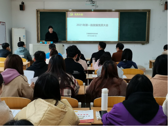 2021年3月17日中午12:30,工程管理学生党支部采取线上线下相结合的方式于实训楼C105召开2021年第一批发展党员大会。会议由工程管理学生党支部书记孙杉主持,党委书记刘大为、部分教师及支部全体学生党员参加。