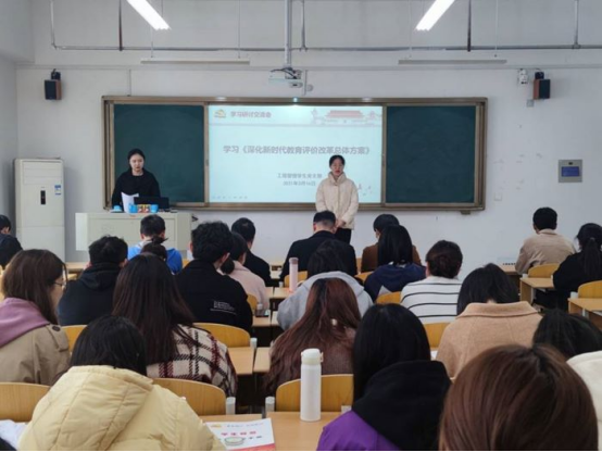 为深入贯彻落实习近平总书记教育重要论述和全国教育大会精神,落实立德树人根本任务,3月16日中午 12:30,工程管理学生党支部于实训楼C105召开《深化新时代教育评价改革总体方案》专题交流研讨会。会议由工程管理学生党支部书记孙杉主持,支部全体学生党员参加。