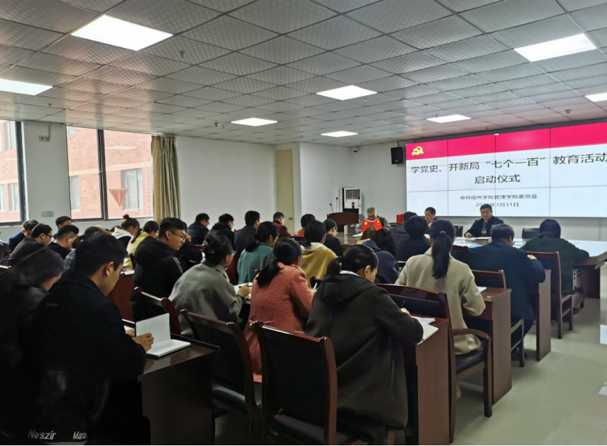 为隆重庆祝中国共产党的百年华诞,宣传党的百年奋斗历程和丰功伟绩,激发广大师生的爱国热情,管理学院于3月31日举行学党史、开新局“七个一百”教育活动启动仪式。启动仪式由管理学院党委书记刘大为主持,副书记、副院长韩传龙、副书记王永宁、及全体教师和学生代表参加。