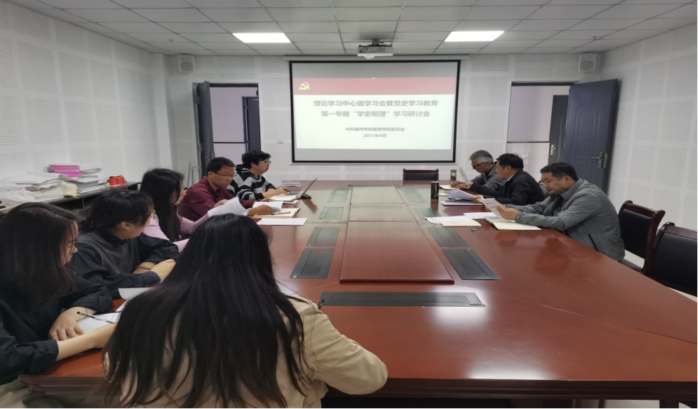 4月30日,管理学院党委在实训楼C310会议室召开理论学习中心组学习会暨党史学习教育第一专题“学史明理”专题研讨会。党委书记刘大为主持。学院处级领导干部、支部书记、科级干部、辅导员参会。