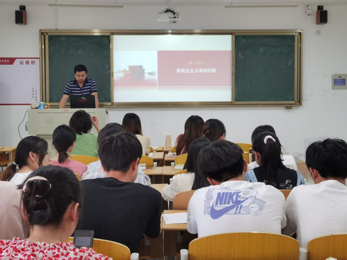 活动开始,陈鹏分别从新民主主义革命时期、新中国成立、改革开放、社会主义现代化建设四个部分向学生党员们解读了《中国共产党简史》的大致内容。会议中,陈鹏对学生党员们强调,一定要走好新时代的长征路,要深入学习党的创新理论,加强党史学习教育,不断提高政治判断力、政治领悟力、政治执行力。最后,学生党员表示,我们做任何事情,要学会实事求是、坚持真理,科学应变、主动求变。