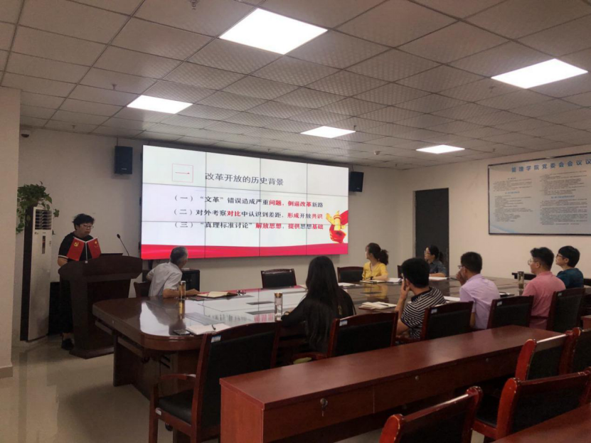 6月25日,管理学院工程与物业管理教师党支部书记上党课,专题学习党在改革开放新时期的历史。党支部全体党员参加。