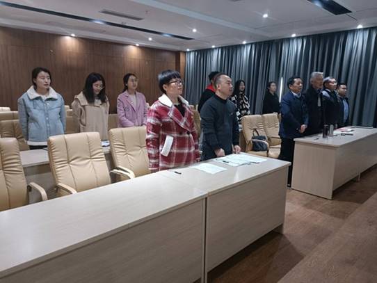 在雄壮的国歌声中,支部换届大会正式开始。首先,周冲代表上届党支部委员会作工作报告,详细介绍了上届党支部委员会的工作成绩和需要努力的方向。工作报告得到参会党员的广泛认同,获得一致通过。