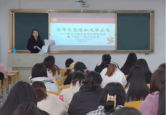 工程管理学生党支部于12月6日下午13:00在实训楼C105开展本次“百年大党缘何风华正茂——学习习近平总书记重要讲话暨‘四史’的系统思考”集中政治学习会。本次会议由支部书记徐蒙主持, 支部全体学生党员参加。