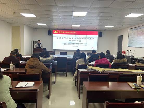 2022年1月7日下午,管理学院人力与旅游酒店管理教师党支部和工程与房产物业管理教师党支部在实习实训楼C301会议室开展了教师集中政治学习会,专题学习了省第十一次党代会精神,会议由人力与旅游酒店管理教师党支部书记李龙主持,全体教师党员参加。