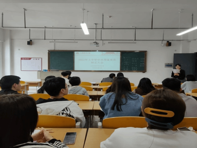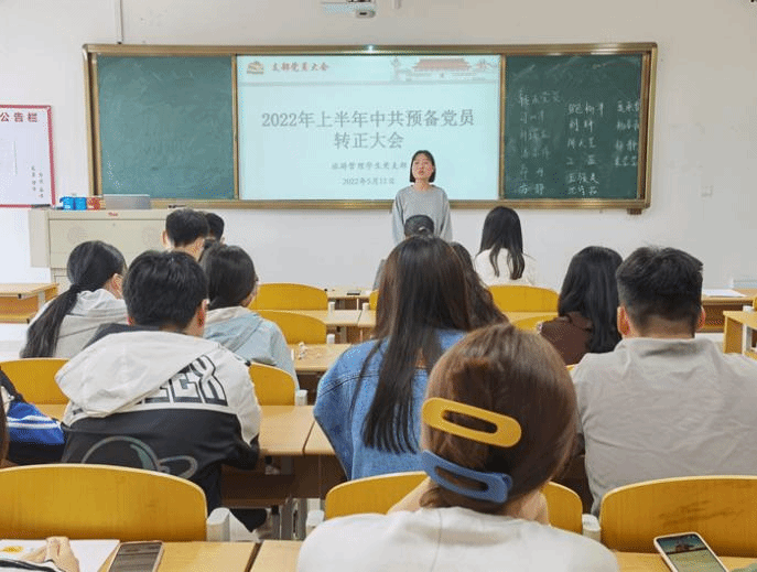 管理学院旅游管理学生党支部于2022年5月11日下午12:50在实训楼C204开展2022年上半年中共预备党员转正大会。本次会议由杨利元、李龙、蔡雪洁、苗慧慧等教师党员以及全体学生党员参加,会议由支部书记杨利元主持。