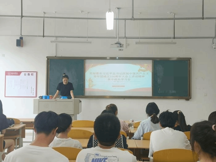 管理学院旅游管理学生党支部于2022年5月23日下午12:50在实训楼C204开展学习贯彻习近平总书记庆祝中国共产主义青年团成立100周年大会上讲话精神。支部全体学生党员参加,会议由支部书记杨利元主持。