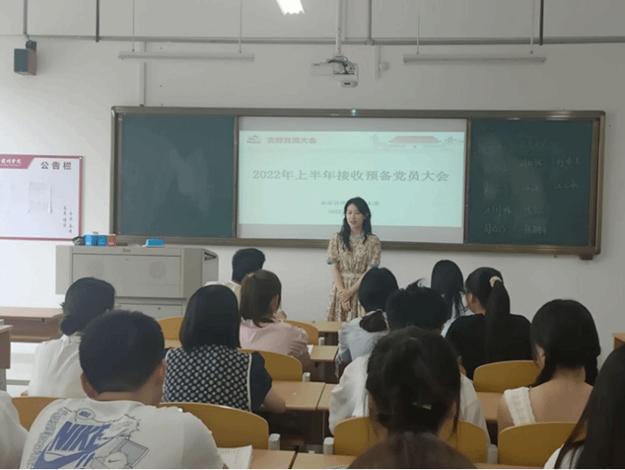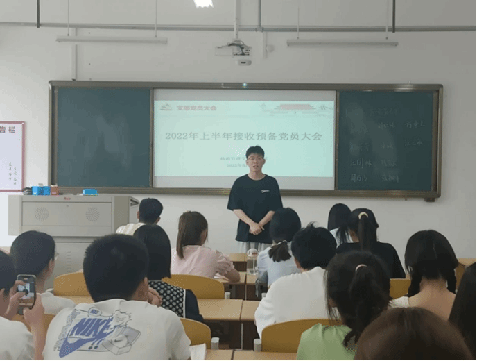 管理学院旅游管理学生党支部于2022年5月31日下午12:50在实训楼C204开展2022年上半年接收中共预备党员大会。本次会议由杨利元、李龙、胡梦姚等教师党员以及全体学生党员参加,会议由支部书记杨利元主持。