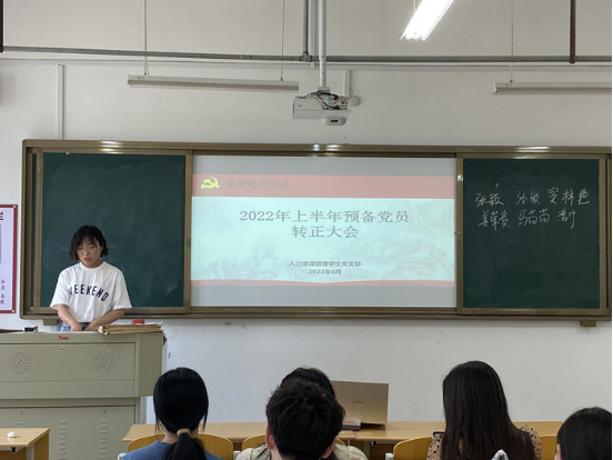 6月21日中午12:30,学院人力资源管理学生党支部于实训楼C111召开2022年上半年党员转正大会。本次会议由部分教师及支部全体党员参加,支部书记巩艳艳主持。