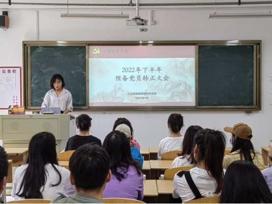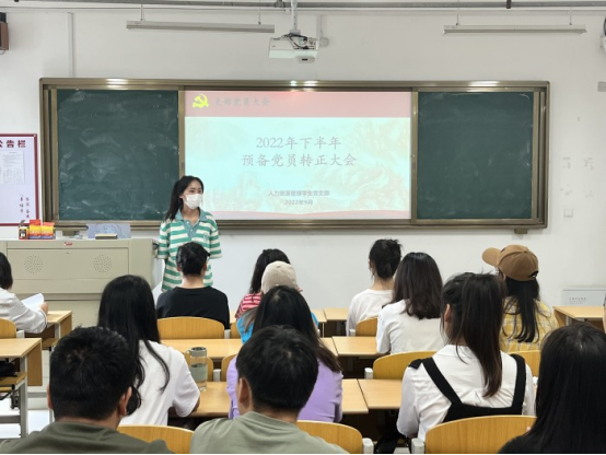 9月13日中午12:40,学院人力资源管理学生党支部于实训楼C111召开2022年下半年预备党员转正大会。本次会议由部分教师及支部全体党员参加,支部书记巩艳艳主持。