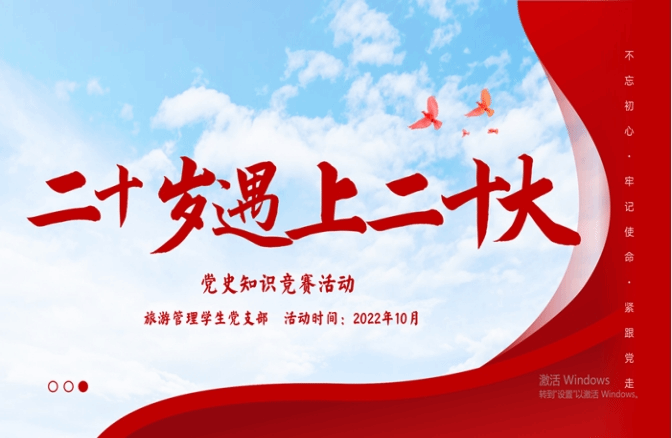 为迎接和学习宣传党的二十大,充分展示当代青年的责任与担当,管理学院旅游管理学生党支部于2022年10月10日—2022年10月15日在线上开展了“二十岁遇上二十大”——喜迎党的二十大短视频创作活动。