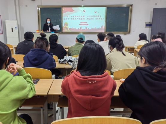 10月27日中午12:30,管理学院工程管理学生党支部在实训楼C211召开“学习《中国共产党第二十次全国代表大会关于<中国共产党章程(修正案)>的决议》”政治理论集中学习会。本次会议支部全体学生党员参加,支部书记徐蒙主持。