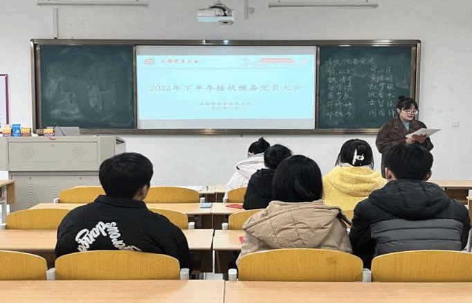 12月8日上午10:30,旅游管理学生党支部采用“线上+线下”双结合的模式在实训楼C204召开2022年下半年接收预备党员大会。本次大会由部分教师党员及支部全体学生党员参加,由支部书记杨利元主持。
