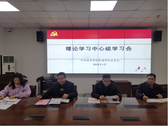 1月16日上午,管理学院在实训楼C301召开理论学习中心组学习会。理论学习中心组成员参加会议。会议由院党委书记蔡若愚主持。