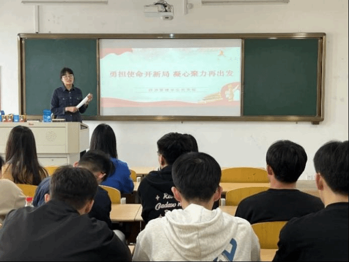 管理学院旅游管理学生党支部于3月9日中午12:50在实训楼C204开展“勇担使命开新局,凝心聚力再出发”主题党课。本次党课支部全体学生党员参加,支部书记杨利元主持。