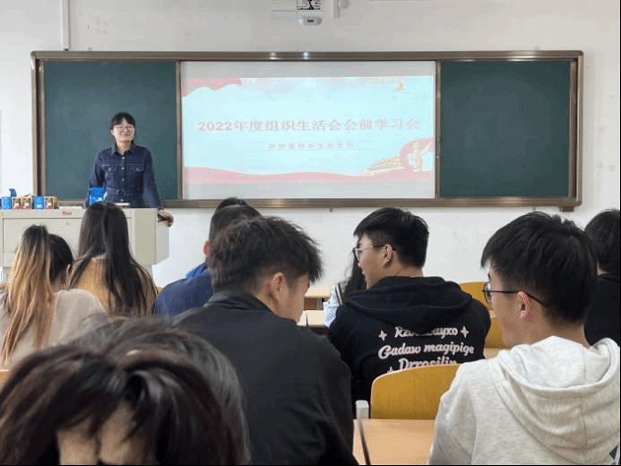 3月9日中午12:50,旅游管理学生党支部于实训楼C204采用线上线下相结合的方式开展2022年度组织生活会会前学习会。本次会议由支部书记杨利元主持,支部委员李龙、蔡雪洁和全体学生党员参加。