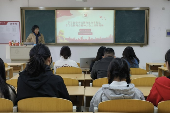 4月25日中午12:40,学院人力资源管理学生党支部在实训楼C111召开“学习省委书记韩俊在全省传达学习全国两会精神大会上讲话精神”政治理论集中学习会。本次会议支部全体学生党员参加,由支部书记巩艳艳主持。