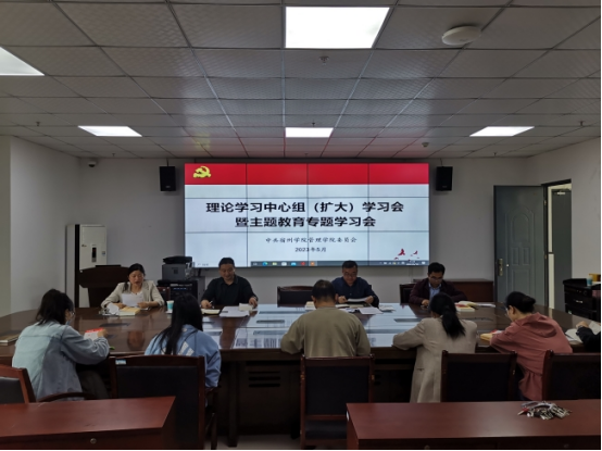 5月10日下午,管理学院在实训楼C301召开理论学习中心组(扩大)学习会暨主题教育专题学习会。理论学习中心组成员、科级干部和党支部书记参加会议。会议由院党委书记蔡若愚主持。