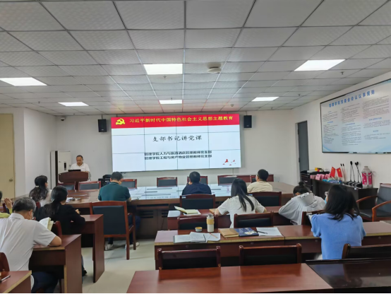2023年5月31日下午,管理学院人力与旅游酒店管理教师党支部和工程与房产物业管理教师党支部在实习实训楼C301组织开展支部书记讲党课活动。各教师支部书记、全体教师党员参加。