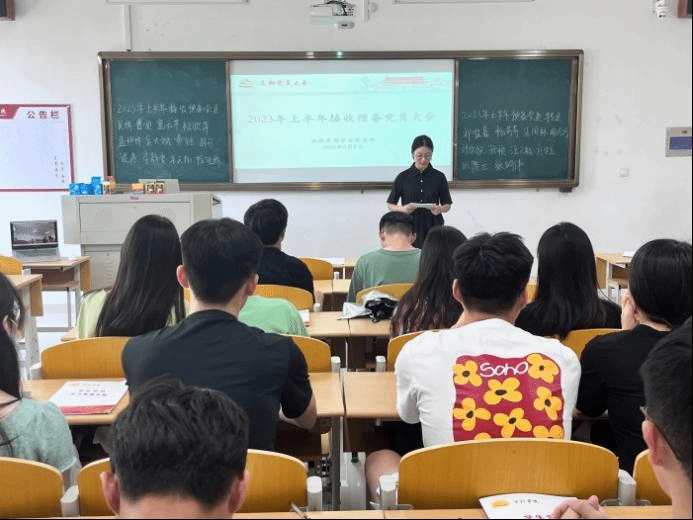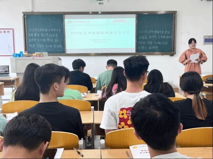 2023年6月8日中午12:50,管理学院旅游管理学生党支部采用“线上+线下”相结合的方式于实训楼C204召开2023年上半年接收预备党员大会。本次大会由部分教师党员和支部全体学生党员参加,由支部书记杨利元主持。
