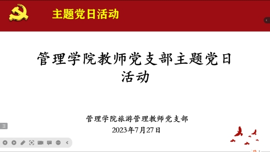 为深入开展学习贯彻习近平新时代中国特色社会主义思想主题教育,7月27日下午,管理学院旅游管理教师党支部开展主题党日活动,全体党员围绕“三问”开展学习交流。