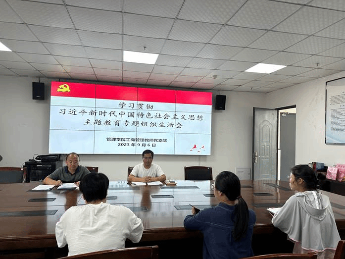 2023年9月13日下午,管理学院工商管理教师党支部在实习实训楼C301召开学习贯彻习近平新时代中国特色社会主义思想主题教育专题组织生活会。管理学院党委副书记、纪委书记张增林到会指导。