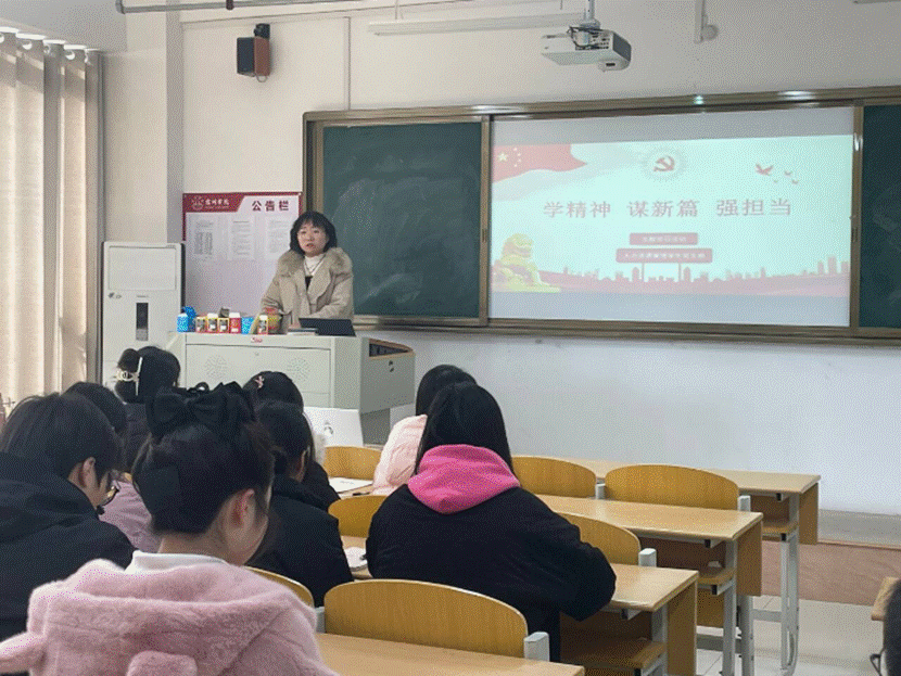 11月30日中午12:00,管理学院人力资源管理学生党支部在实训楼C111开展了“学精神、谋新篇、强担当”主题党日活动。本次主题党日活动支部全体学生党员参加,由支部书记巩艳艳主持。