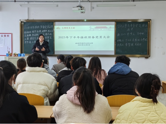 2023年12月8日,管理学院旅游管理学生党支部采用“线上+线下”相结合的方式于实训楼C204召开2023年下半年接收预备党员大会。本次大会由部分教师党员和支部全体学生党员参加,由支部书记王思惠主持。