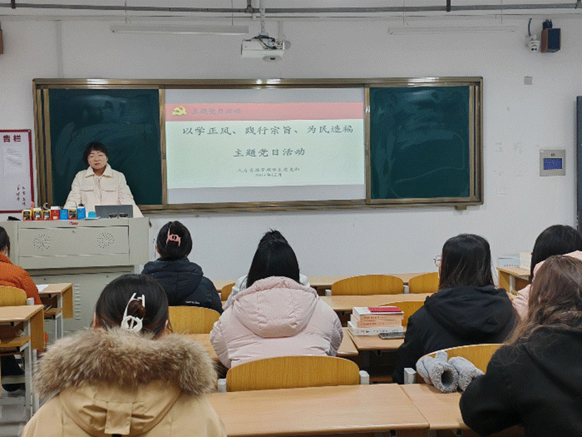 管理学院人力资源管理学生党支部于12月12日中午13:30,在实训楼C111组织召开“以学正风、践行宗旨、为民造福”主题党日活动,本次会议支部全体学生党员参加,由支部书记巩艳艳主持。