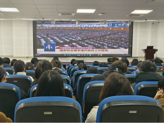 3月5日上午9:00,管理学院党委组织师生分别在实训楼C103和C301观看2024年两会的开幕盛况,以进一步加深对党和国家政策的理解和认识。