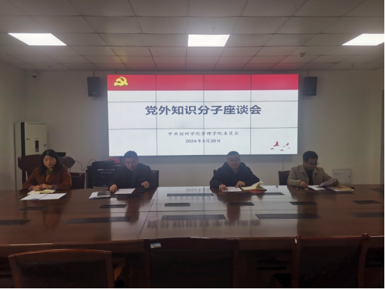 为深入学习贯彻习近平新时代中国特色社会主义思想和习近平总书记在全国两会发表的系列重要讲话精神,开展好党外知识分子“双树双建”主题教育活动,进一步推动学院党外知识分子建言献策工作提质增效,3月20日下午,管理学院党委在实训楼C301会议室召开党外知识分子座谈会。学院领导班子和党外知识分子代表参加座谈会。会议由院党委书记蔡若愚主持。