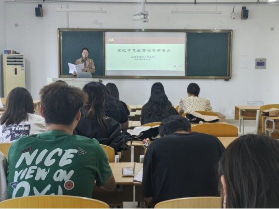 为深化对党纪学习教育的认识和理解,增强党员的纪律意识,提升党员的思想道德素质,管理学院旅游管理学生党支部于4月19日在实训楼C210召开党纪学习教育动员部署会。会议由支部书记王思惠主持,支部全体学生党员参加本次会议。