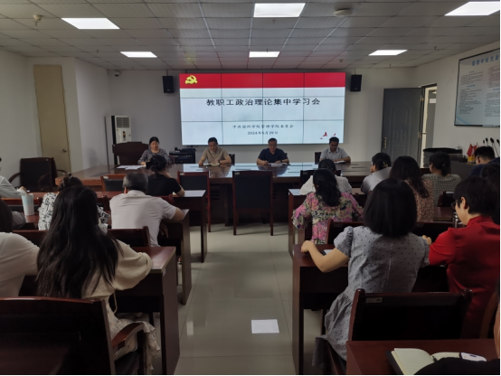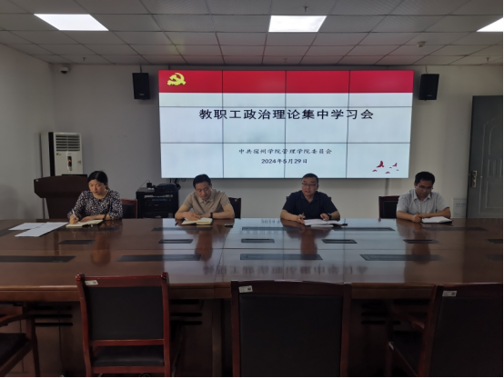 5月29日,管理学院在实训楼C301召开教职工政治理论集中学习会。全体教职工参加会议。会议由院党委书记蔡若愚主持。