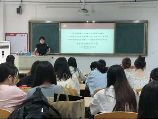 管理学院人力资源管理学生党支部于5月20日,在实训楼C111组织召开五月份集中政治理论学习会,本次会议支部全体学生党员参加,由支部书记巩艳艳主持。