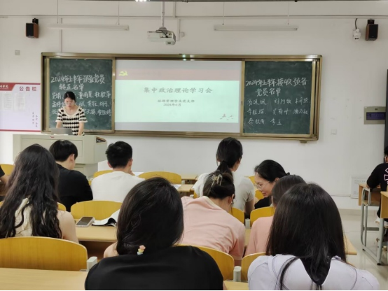 为了加强党的建设、推进全面从严治党,保持党的先进性和纯洁性,管理学院旅游管理学生党支部于6月25日在实训楼C213教室开展政治理论学习会。会议由支部书记王思惠主持,支部全体学生党员参加。